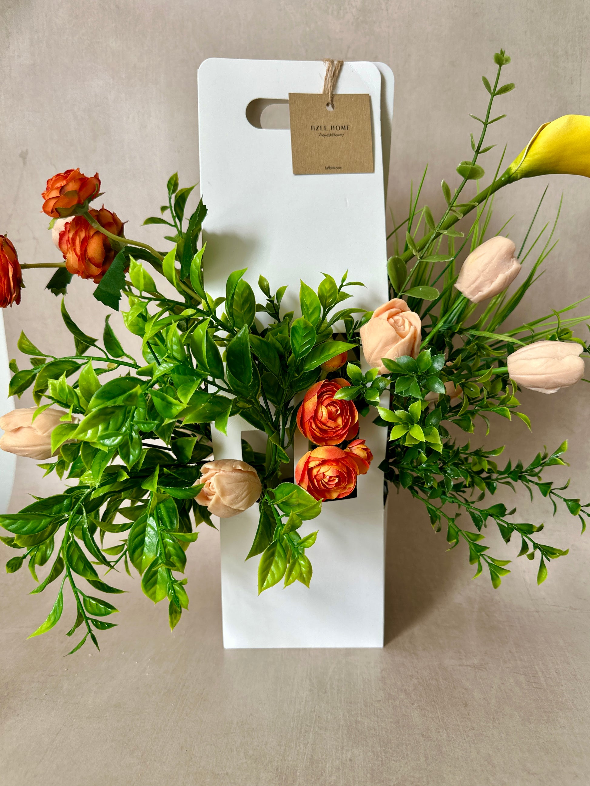 Delight the senses with The Forever Bouquet, a handcrafted arrangement of 8 tulip-shaped scented wax melts nestled among lifelike blooms and foliage. Elegantly presented in a crisp white carry box, this unique floral display combines beauty and fragrance for a gift that lasts far beyond fresh flowers